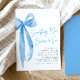 Celebrar a noiva com este Chá de panela azul "Algo Azul Antes de Eu Fazer" 🎀 💍. Apresentando um elegante arco azul estilo coquete, este design define o tom perfeito para uma celebração chic e sofisticada. Os detalhes delicados e a estética do eterno o tornam ideal para um chá de panela cheio de amor e alegria. Personalize facilmente o texto para corresponder ao seu evento e impressionar os seus convidados com este convite para na moda. Uma maneira perfeita de honrar o dia especial da noiva! 💙 ✨