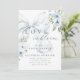Celebre a noiva a ser com este elegante chá de panela "Amor em Bloom". Apresentando um delicado design floral de aquarela em tons azuis suaves, este convite expele encanto e sofisticação. Um arco azul-escuro e uma tipografia de script graciosa adicionam um toque romântico, fazer-o a escolha perfeita para uma festa de jardim, primavera ou chá de panela com tema floral.