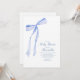 Convide amigos e família para comemorar a chegada de um cavalheiro com este Convite para Chá da Fita Azul de Fita Arco Fita, Bebê-! Projetado com um toque clássico e encantador, este convite apresenta uma paleta de cor azul macia com um adorável sotaque de fita arco, criando uma doce e sofisticada procura por um chá de fraldas de menino. Impresso no estoque de cartão de qualidade premium, este convite inclui detalhes personalizáveis, fazer que é fácil personalizar com a data, hora e local do chá. Com o seu elegante design e eterno apelativo, este convite define o tom perfeito para um chá de fraldas que é simultaneamente bonito e elegante. Ideal para um chá tradicional ou moderno, este Convite de Fita de Arco Azul é certamente um prazer para os hóspedes e faz com que eles se sintam bem-vindos enquanto se preparam para celebrar o menino no caminho!