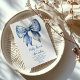 Convide amigos e família para comemorar a chegada de um cavalheiro com este Convite para Chá da Fita Azul de Fita Arco Fita, Bebê-! Projetado com um toque clássico e encantador, este convite apresenta uma paleta de cor azul macia com um adorável sotaque de fita arco, criando uma doce e sofisticada procura por um chá de fraldas de menino. Impresso no estoque de cartão de qualidade premium, este convite inclui detalhes personalizáveis, fazer que é fácil personalizar com a data, hora e local do chá. Com o seu elegante design e eterno apelativo, este convite define o tom perfeito para um chá de fraldas que é simultaneamente bonito e elegante. Ideal para um chá tradicional ou moderno, este Convite de Fita de Arco Azul é certamente um prazer para os hóspedes e faz com que eles se sintam bem-vindos enquanto se preparam para celebrar o menino no caminho!