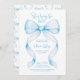 Arco Azul Coquette Ela é Chá de panela Casando. Bonito encanto feminino lindo de aquarela pintada com arco azul com bordas onduladas. A caligrafia escreve vamos que todos sabem que ela é casando. Convide amigos e família para um chá de panela de coquete feminino encantado com arcos galore! Bonito padrão de arco azul no verso do convite. Modelos são fáceis de editar com todos os detalhes do chá de panela.