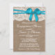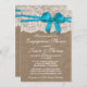 Estas fitas azuis com arco em uma braçadeira rústica e festa de noivado de rendas brancas vintage ou convites para chás farão o anúncio perfeito para qualquer noiva e noiva! A design apresenta uma faixa azul adorável com arco em um fundo de efeito de burlap com efeito romântico com efeito de renda branca de vintage romântico. Esses convites podem ser personalizados para sua ocasião especial e farão o anúncio perfeito para qualquer casamento rústico, chá de panela, festa de noivado, festa de aniversário e muito, muito mais. *Observe que o Zazzle só vende convites impressos para que esses convites não tenham nenhum material de fita, arco, burlap ou local real.