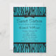 16 Convites De Azul Teal Doce. Um animal de zebra preto e azul-branco imprime um doce convite de dezesseis anos.