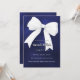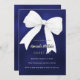 Um fundo azul marinho, incolor, decorado com um arco branco grande. Personalize e adicione um nome e detalhes da parte.