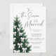 Neste Natal, o chá de panela de inverno personifica elegância quic com sua design de aquarela encantadora, apresentando um pinheiro majestoso com decorações de arcos brancos, pintados em aquarela moderna, assim como caligrafia moderna para o título "Esta é a Estação a Ser Casada". Perfeito para casais que amam arte e designs únicos, temas elegantes, rústicos, boêmicos e românticos do país, este convite é a escolha ideal para convites de chá de panela de Natal.