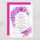 Arca de boho com flores cor-de-rosa magenta e roxa e deixa convite para casamento. Esta bonito design de casamento mostra um quadro de arco com dalia e rosa e flores e folhagem em cor rosa e roxa. A parte de trás é de cor rosa magenta sólida.