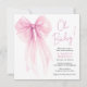 Celebrar a chegada de uma menina com este belo convite de chá de fraldas quadrado com uma linda aquarela pintada à mão de um arco colchete rosa, "Oh Baby!" em um roteiro chic rosa, e o nome da futura mãe e os detalhes do evento em simples letras modernas — este convite é a combinação perfeita de sofisticação e doçura. Por favor, note que este cartão quadrado exigirá um pouco de cartaz extra.