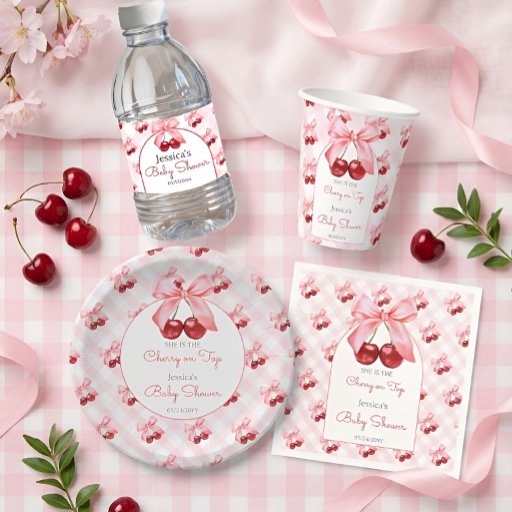 Cherry, Coquette pink bow, gingham Baby ShowerCriado por Y K
