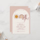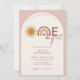 Convite de arco de 1º aniversário boêmio adorável com arco-íris e sol.