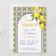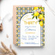 Convite para a modelo de festa de aniversário italiano Majolica azulejos de limões azuis e amarelos, mediterrânicos com temas ciao trinta, quarenta, etc