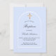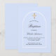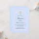Um fundo azul claro e uma moldura em arco. Personalize com um nome e detalhes da cerimônia. Estilo de letra à mão elegante.