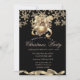 Um convite elegante para festas de férias com flocos de neve de ouro e bola de Natal com arco em fundo de ouro. Estes belos convites de Natal são perfeitos para convites de festas de janto de Natal, convites para troca de presentes de Natal, angariadores de fundos de Natal, convites para bolas de férias e outros eventos realizados durante o mês de dezembro. Use apenas os campos modelo para adicionar suas próprias informações de evento.