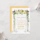 O Cartão de Convite para Casamento Floral Amarelo de Canopia de Casamento Elegante inclui lindas rosas amarelas e rosas brancas. O arco da copa do casamento da madeira inclui vegetação botânica. Dourado Script.
