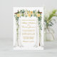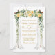 O Cartão de Convite para Casamento Floral Amarelo de Canopia de Casamento Elegante inclui lindas rosas amarelas e rosas brancas. O arco da copa do casamento da madeira inclui vegetação botânica. Dourado Script.