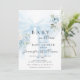 Celebre em estilo com o nosso elegante convite de chá para o bebê 'Baby in Bloom', com florais azuis de cor aquática suave e um encantador sotaque de arco de coquete. Projetado com uma estética moderna, mas delicada, esse convite é perfeito para chás de fraldas de primavera ou de verão. Quer você esteja planejando uma celebração bestial, rústica ou temática de jardim, este belamente elaborado convite adiciona um toque de charme de eterno e estabelece a palco de um evento doce e inesquecível.