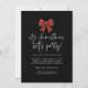 Arco de coquete vermelho permite o Natal da festa. Disponível digitalmente e impresso. Sparkle para convidar os seus convidados festivos com um arco de brilho falso e coordenar o padrão no outro lado a preto clássico. Um roteiro de conjunto informal na moda para a Festa de Natal e o resto do texto que você pode personalizar facilmente.