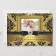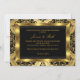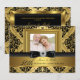 Convite de Aniversário Dourado e Preto. Elegante arco de jóia preta e desenho de damasco dourado. Eles NÃO têm Jóias ou Arcos reais!