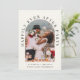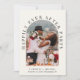 Elegante convite de casamento ou noivado em creme claro para anúncio e recepção. A frente apresenta sua foto em uma moldura de imagem arqueada e "Festa Feliz para Sempre" em tipografia serifada elegante. Sob sua foto, você pode adicionar seus primeiros nomes, data e local do casamento. No verso, você pode personalizar sua mensagem em mais detalhes e adicionar detalhes da festa ou recepção e seus nomes em uma caligrafia semelhante a uma assinatura.