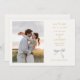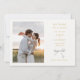 Chic e elegante. Este lindo cartão de datilografia apresenta um adorável arco branco de fita colorido d'água, fonte de ouro de imitação contemporânea contra fundo branco e foto de casal. Iniciais de casal opcionais na parte traseira com detalhes repetidos de fita. Excelente e único, este cartão exclui um sentido de elegância, alegria e charme.