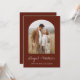 Personalize este Arco de Foto Boho Terracota Marrom Save The Date Duplo com sua mensagem e detalhes. Este convite chic inclui tipografia moderna e elegante com escrita à mão estilosa para a celebração especial do casamento a ser realizado.