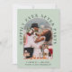 Convite moderno de casamento ou elopamento em verde salvia para anúncio de casamento e recepção. A frente apresenta sua foto em uma moldura de imagem arqueada e "Festa Feliz para Sempre" em tipografia serifada elegante. Adicione seus primeiros nomes, data e local do casamento. No verso, você pode personalizar sua mensagem com mais detalhes e adicionar detalhes da festa ou recepção e seus nomes em uma caligrafia semelhante a uma assinatura.