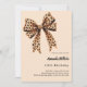 Um fundo bege macio, decorado com um grande arco com impressão leopardo. Personalize e adicione um nome e detalhes da parte.