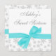 Winter Wonderland Sweet 16 Convites de aniversário. Um doce convite de 16 flocos de neve na moda, apresentando uma ilustração do arco de fita azul. Personalize facilmente os detalhes de sua festa! Designs são ilustrações/gráficos impressos - NÃO EMBELÉCIES REAIS.