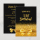 Convite de festas elegante, clássico, glamouroso e feminino. Uma fita e um arco dourados com brilho e brilho de ouro, um pouco de brilho e luxo para um aniversário. Fundo preto. Com o texto: aniversário de 21 anos! na frente. Modelo para um nome. Adicione os detalhes do evento no verso.