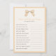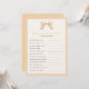 Perguntas editáveis sobre o título do jogo e texto para o chá de fraldas ou chá de panela. Como você sabe que a mãe é, quem sabe o melhor jogo de mamães. Apresenta um arco pintado manualmente com xadrez sutil no Pêssego do Pastel e fundo do marfim; borda e cor de fundo editáveis na frente e atrás.