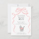 Um tema chá de fraldas bonito para uma mamãe a ser. Este Arco elegante e Carruagem Bebê | O Convite para Chás de fraldas de meninas apresenta uma fita rosa desenhada à mão e carruagem de bebês em fundo branco. Na parte de trás, há um padrão de bolinhas rosa giro em comum sobre fundo branco. Você pode alterar a cor de fundo na ferramenta design e adicionar seus detalhes personalizados facilmente usando os campos modelo. Veja toda a coleção de itens e suprimentos de festas correspondentes com este tema maravilhoso de arco e carruagem para bebês. Exibir toda a coleção abaixo do produto (Clique no link abaixo do cabeçalho "Outros produtos nesta coleção"). Feliz personalização e festa de excelente! ©Marisu Valencia