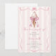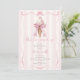chá de panela temático "Ela foi enrolada" com Sorvete ilustrando a cone de sorvete com arco rosa e sorvete revestido com anel de noivado de diamante solitário. O fundo é a faixa de rosas claro. A borda é um design cor-de-rosa ondulado com arco.