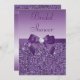 Convites de chá de panela púrpura elegantes e personalizados com um lindo padrão de sequências impressas, um arco e fita brilhantes impressos e uma joia bonito de bling de diamante impresso e texto roxo em um fundo de gradiente lilac. Estes clássicos, glamourosos, sofisticados, convites femininos são decorados de ambos os lados. modelos de convite para chás de panela bonitos, chicos, modernos. Observe que: Todos os convites no Zazzle têm imagens impressas em formato simples.O texto, a fonte e a cor da fonte podem ser personalizados. Se precisar de ajuda para personalizar seu produto, entre em contato comigo pela loja. Ficarei feliz em ajudar.