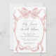 Convite para Chá de fraldas de Fita Rosa Esmagada. Celebre a mãe por estar com esta design de inspiração feminina e romântica, perfeita para um chá de fraldas sonhador. Um arco de cor-de-água cor-de-rosa e suave, acentuado com fitas fluentes em delicadas rosa, ganha palco central, acrescentando um toque feminino e caprichoso. Os detalhes do chá de fraldas são enquadrados dentro de um elegante design oval, escrito em uma mistura de letras graciosas de cinza escrita à mão e fontes de sserifa chic, criando um olhar que é partes iguais, lúdicas e refinadas. Este design exumenta o charme vintage enquanto adota uma estética moderna, na moda, fazer ideal para uma festa de chá, um brunch de jardim ou uma celebração inspirada em coquete. A palheta de rosa empoeirada, aliada à delicada tipografia, cria uma vibração macia e romântica que sente um eterno sem esforço e exclusivamente feminino. Totalmente personalizável, você pode ajustar o texto, as fontes e o layout para corresponder ao estilo e ao tema do evento. Disponível como um convite impresso ou um arquivo digital baixável, este design dá o tom de um chá de fraldas inesquecível, celebrando que a mãe está com charme e elegância.