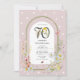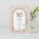 Junte-se a nós para uma celebração caprichosa do 70º aniversário de nossos clientes! Nosso convite botânico elegante ostenta um lindo fundo rosa poeirento salpicado com delicados pontos brancos. Adornado com um charmoso arco de aquarela, apresentando flores vibrantes da primavera e do verão, e adornado com animais selvagens encantadores, como borboletas a voar e joaninhas delicadas. Personalize o modelo editável com os detalhes do seu evento para um toque pessoal. Perfeito para nossos amigos jardineiros que apreciam a arte da cerâmica!