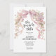 Elegante convite de festas de fita floral para aquela mulher especial em tons suaves de rosa. Adicione seus próprios detalhes com facilidade para criar aquele convite chic e elegante para aquele aniversário de 40 anos especial.