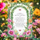 Celebre seu dia especial com este convite encantador para o casamento do jardim, com um arco exuberante enfeitado com flores verdes e vibrantes. As borboletas flutuam ao redor do design, adicionando um toque balançoso ao fundo sereno, esbranquiçado. Perfeito para um casamento de primavera ou ao ar livre, este convite captura o romance e a beleza de um jardim de cheio florescente, ideal para casais que amam a natureza e a elegância.