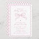 Bem-vindos convidados para o seu chá de fraldas com o Convite para Chá de fraldas da Garota Branca do Arco da Coquette! Este convite adorável apresenta um arco encantador, uma moldura branca e um padrão cardíaco no verso, acrescentando um toque lúdico. Disponível como cartão impresso ou download digital instantâneo, você pode personalizar todas as cores facilmente usando a "ferramenta design" para corresponder perfeitamente ao seu tema. Ideal para uma celebração na moda, divertida!