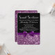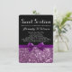 Bonito padrão de fundo brilhante roxo impressão e fita com arco, impressas neste adorável, chique e sassy convite de aniversário dezesseis para a garota com um senso de estilo e graça na moda. O brilho de faíscas cintilantes é menos bagunçado que a coisa real, e o belo arco é um toque impresso maravilhoso.