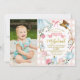 Arco Impresso Rosa Alice Onederland, primeiro aniversario de Foto Imaginosa, Convidar Alice Doce Alice em uma terra, o primeiro convite de aniversário com um padrão de diamante rosa, arco e faixa cor-de-rosa, vários itens da história e uma foto na frente. Este convite de um primeiro aniversario terrestre também apresenta um título decorativo falso de caligrafia em ouro e um pequeno coração.
