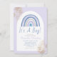 Este design de convite para chá de fraldas de para bebês é principalmente de um esquema de cor azul pastel. Sua design apresenta um arco-íris azul com um coração no meio, uma forma de arco de tendência, penas douradas sobre um fundo azul empoeirado. Este convite está pronto para ser personalizado e fácil de personalizar. Para itens e presentes projetados para chás de fraldas semelhantes, verifique a coleção ou visite a loja.