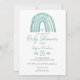 Celebre a chegada do seu pequeno com esta ilustração fofa do arco-íris com um coração fofo em tons verdes e azuis de menta. Chá de fraldas.