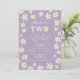 Ela é selvagem! Celebre o seu segundo aniversário com o nosso adorável convite de festas de flores de margarida de lavanda roxa! Apresentando um belo design arco-íris de tons de terra dizendo que aquele com uma flor de margarida em forma de coração, este convite é perfeito para uma celebração divertida e selvagem com amigos e familiares.