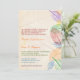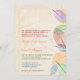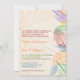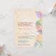 Uma paleta colorida de folhas mostrando seu delicado veneno aparece no lado direito deste convite de casamento. O fundo é uma cor delicada, levemente em apuros, com três folhas grandes marcadas d'água no topo. O texto do convite segue as cores do arco-íris de vermelho a roxo. Perfeito para qualquer casamento com o arco-íris! Disponível com produtos correspondentes.
