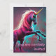 É cordialmente convidado a alterar o texto deste convite de acordo com as suas necessidades! A frente apresenta um unicórnio mágico, mas assustador e alarmante em cores mais escuras e mais góticas do arco-íris. Você pode ser um gótico e ainda amar unicórnios, cavalos e outras criaturas de conto de fadas. Trabalho de arte digital criada por Christine aka stine1 com uma pequena ajuda de uma IA (Inteligência Artificial). Uma peça única de arte em preto, turquesa e rosa com roxo.
