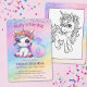 Torne o seu 6 de aniversário extra mágico com este convite para o unicórnio do arco-íris! Apresentando um doce unicórnio pastel e sotaques espumantes, é a maneira perfeita de dar o tom a uma celebração balbuciosa. Um grande arco-íris de cor "6" e este lindo unicórnio chibi com uma coroa de flores ficam no palco central neste adorável cartão de convite. Impresso com uma página de coloração de unicórnio bônus no verso para manter pequenos convidados entretidos!