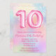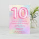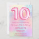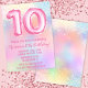 Um convite de aniversário cor-de-rosa Rainbow 10º Aniversário Invitation Girly Pink Glitter para uma menina de 10 anos com escrevendo moderno de escrita e balões de folha divertida.