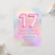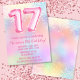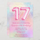 Um convite de aniversário cor-de-rosa Rainbow 17º Aniversário Invitation Girly Pink Glitter para uma menina de 17 anos com escrevendo moderno de escrita e balões de folha divertida.
