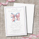 Ele ou Ela, Qual Será o Bebê? Junte-se aos pais ansiosos para descobrir o sexo do bebê com este convite charmoso para a festa de revelação do sexo. O design apresenta um delicado laço em aquarela em tons suaves de rosa e azul bebê, emoldurado por bordas rosa e azul que adicionam um toque de cor às bordas. A mistura elegante de tipografia serifada cinza e script complementa perfeitamente o tema clássico, tornando-o uma maneira ideal de celebrar os futuros pais. Você pode personalizar as cores da fonte e alterar o fundo da frente para combinar com suas preferências, enquanto a parte de trás permanece simples para manter a elegância delicada e atemporal do design. Convite para Festa de Revelação do Sexo Rosa e Azul com Laço, Tipografia Elegante em Script, Bonito.