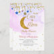 Rainbow Over the Moon Chá de fraldas Invitation for girl with a moon, stars, e belas falhas de ouro.