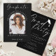 Celebre orgulhosamente o incrível feito do seu graduado com este convite elegante de festa de formatura em preto e branco. Este convite sofisticado apresenta um fundo preto chique, letras em caligrafia bonita e uma foto personalizável do seu graduado. Perfeito para anunciar a formatura do seu filho e convidar familiares e amigos para uma celebração emocionante. Uma escolha atemporal e elegante para homenagear o grande marco do seu filho e tornar o dia verdadeiramente especial! Personalize com o nome do graduado, grau, universidade, detalhes do evento e informações de RSVP. Se precisar de ajuda, sinta-se à vontade para me enviar uma mensagem - adorarei ajudar!